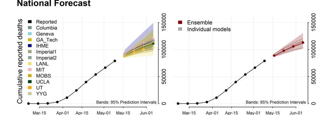 The National Ensemble Forecast analyzes data from 12 different models to created an ensemble forecast/CDC